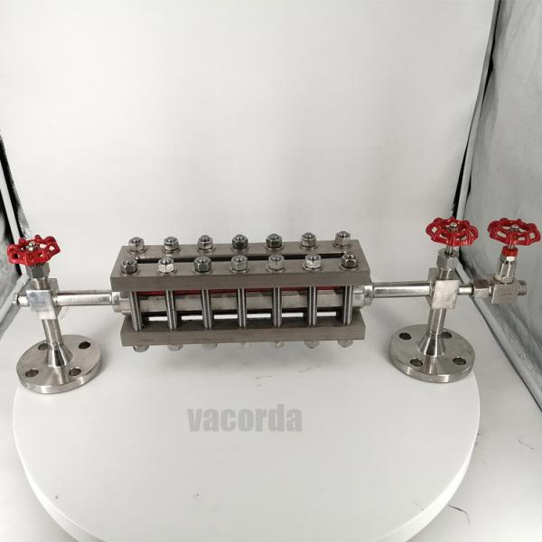 Glass plate level gauge is divided into three kinds: Transparent type, reflection type and sight glass type. The level gauge is mainly composed by level gauge’s body, upper valve (gas valve), lower valve (liquid valve), drain valve, insurance steel ball and so on. When the glass plate have some cracks or be damaged, the insurance steel ball will automatically stop the side valve of gas and liquid to avoid or reduce flowing. So the worker can cut off the bottom valve to handle it. This series product is stable, sealed and reliable, simple installation, which is ideal instrument for detecting for liquid level in all kinds of containers with middle or low pressure.Connecting the upper and lower flanges of this level gauge with the upper and lower flanges of the container to form a permeator, then the height of liquid can be directly seen.